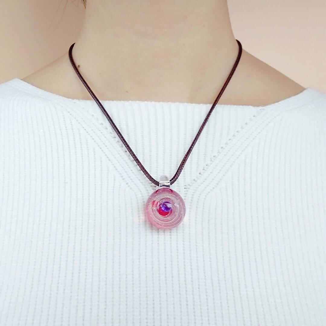 まるで銀河が広がっているような壮大イメージを思わせる神秘的な宇宙(そら)のガラスペンダントです。宇宙を閉じ込めたガラス玉ペンダントネックレス